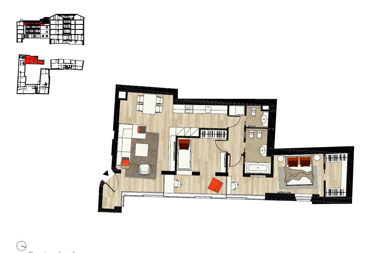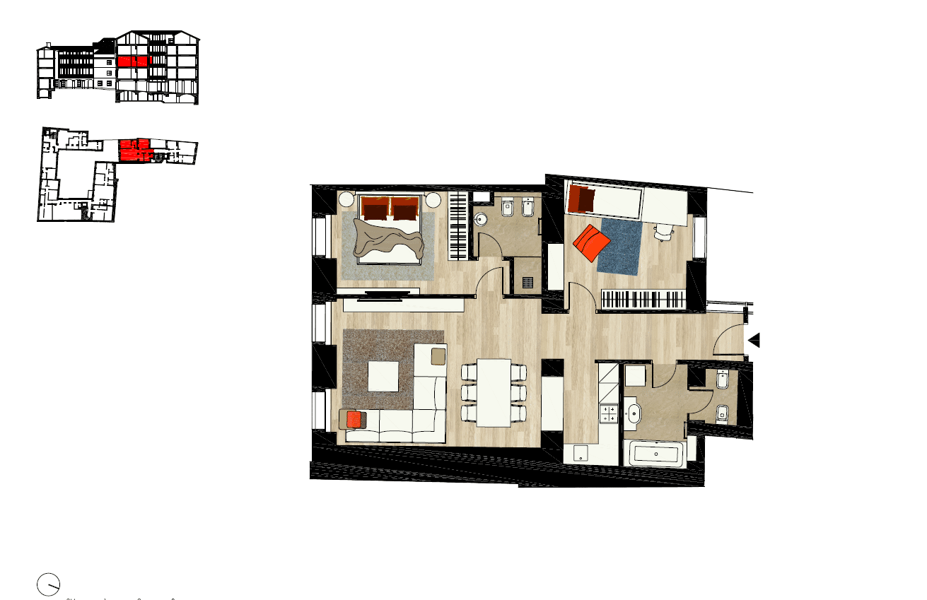 במתחם 33 דירות יוקרה מלאות אור ואוויר ששופצו במומחיות ובטעם כך שהן נותנות מענה לצרכים של סגנון החיים המודרני ושמבטיחות שילוב מושלם בין איכות, פרקטיות, אלגנטיות ומודרניות. ברחבי העולם, איטליה ידועה כארץ של סטייל, אלגנטיות וטעם טוב. העיצוב, האיכות, החדשנות והאהבה הם אלו שהביאו את איטליה למקומה המכובד. ההתלהבות והתשוקה של המתכנן וחזונו בהצעת פתרון מגורים ייחודי ומקסים ביחד עם הרצון לתת לנכס מגע של רוח איטלקית הביאו לניהול כולל של הפרויקט ע"י אחד ממשרדי האדריכלים החשובים באיטליה, סטודיו Pession.