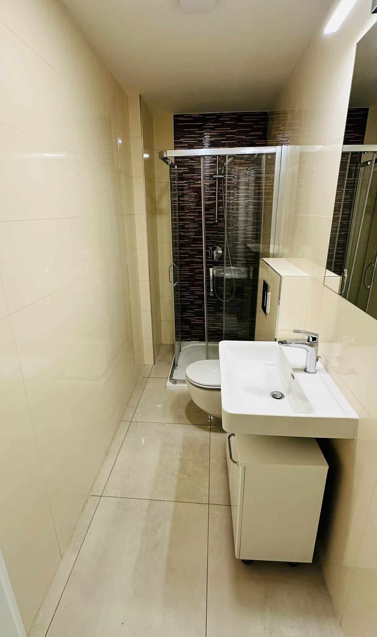 השיפוץ בדירה כלל בין השאר התקנת כלים סניטריים איכותיים, חימום תת רצפתי ועוד.