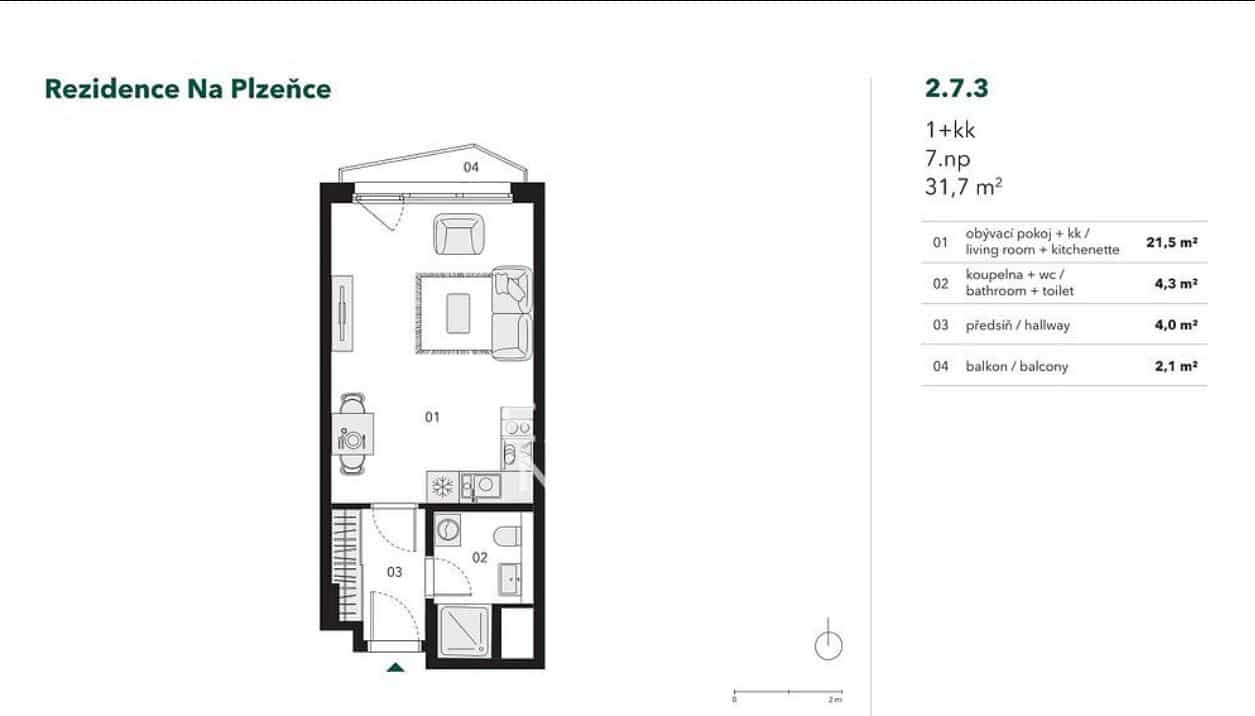 למכירה בפראג 5 דירת 1+KK חדרים בגודל 32 מ"ר